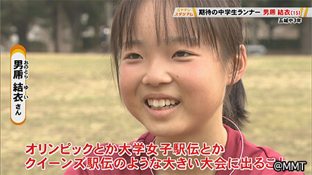 全国都道府県駅伝区間賞の走りで優勝に貢献した将来有望な中学生アスリート、男乕(おのとら)結衣さんを取材しました。
