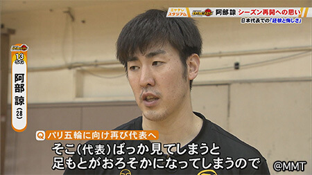阿部諒 「非常に厳しい競争社会の中に入って、そういった(競争)意識をこのチームに持ち帰ってできる部分ではあると思うので(ロスターに)入れなかったことは、次回自分のどういったところが足りなかったとか(それを)晴らす場っていうのがBリーグの試合だと思う」