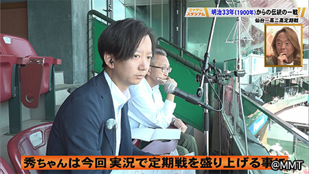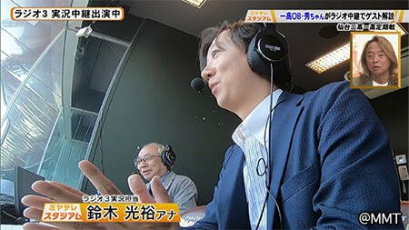 序盤、3回を終えたところで秀ちゃんは球場のラジオ放送席へ移動