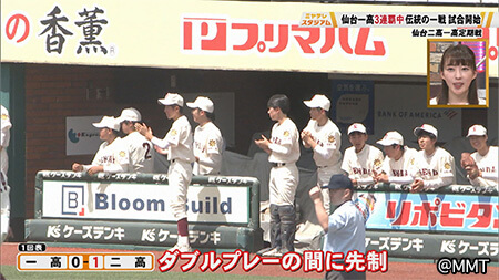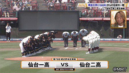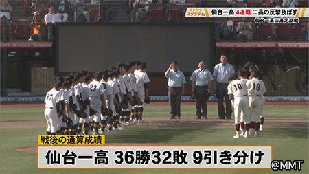 四大会ぶりの勝利へ、仙台二高が先行。四連覇へ、仙台一高が後攻。