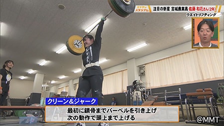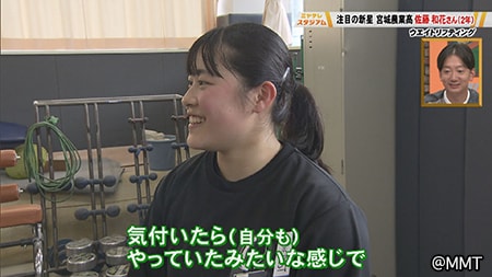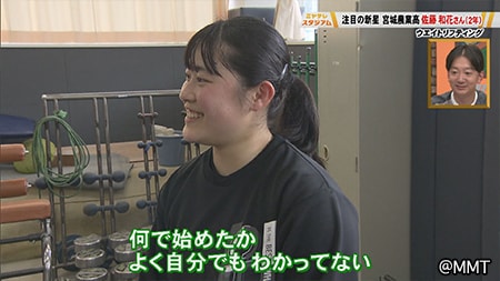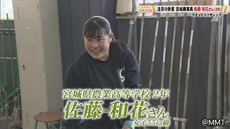 ウエイトリフティングで世界を目指す、宮城県農業高校2年 佐藤和花さん。