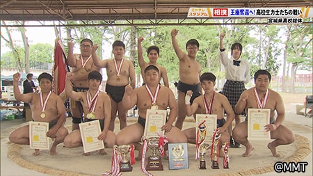 まずは相撲団体戦。王座奪還を狙う加美農業は、去年の覇者小牛田農林を始め、すべての高校にリーグ戦一度も負けず14年ぶりの団体戦優勝!