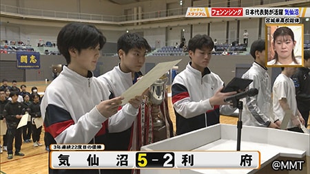 フェンシング男子団体戦決勝は、気仙沼高校と利府高校が対戦。