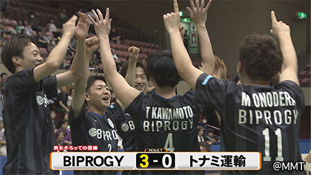 男子決勝戦では、6大会ぶりの優勝を狙う富山のトナミ運輸が、同じくBIPROGYと対戦。