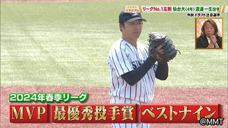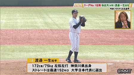 今年秋のドラフト指名を目指す仙台大学の逸材、渡邉一生投手。
