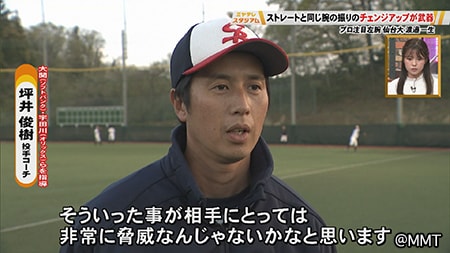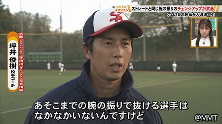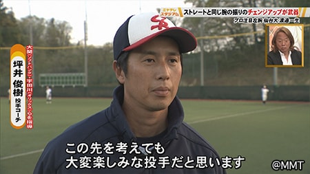 ソフトバンクの大関投手やオリックスの宇田川投手らをプロの世界へ送り出した坪井俊樹投手コーチも渡邉一生投手の完成度の高さを絶賛します。