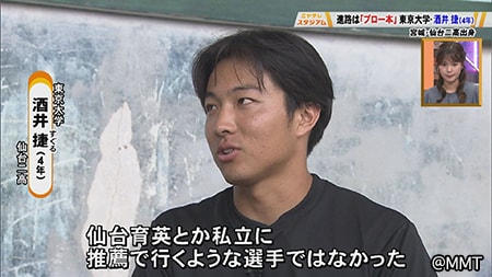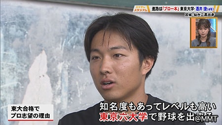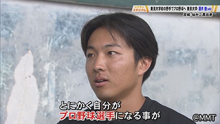 東京大学からプロ野球へ 宮城出身 酒井捷(21)